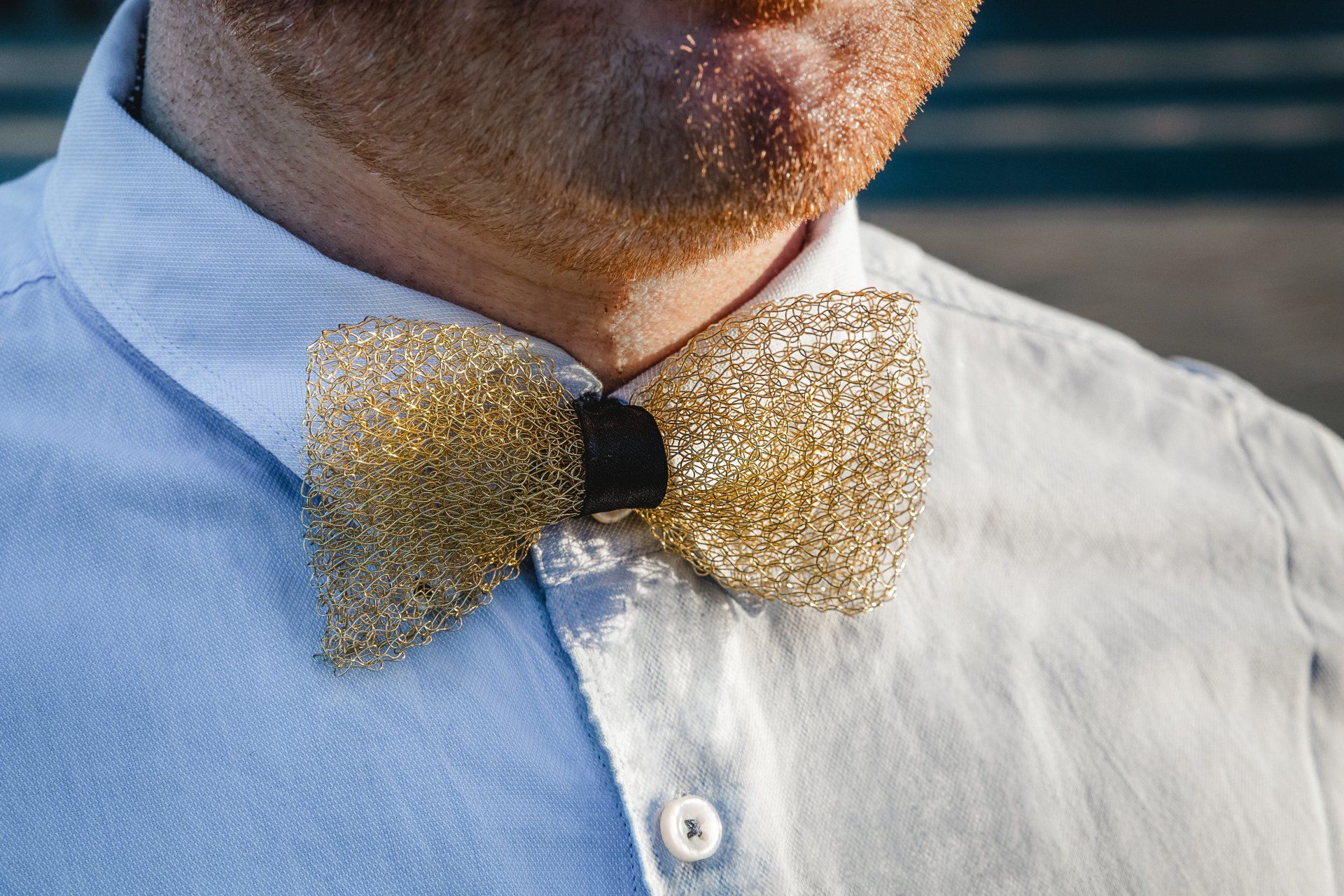 Diese Variante einer klassischen Anzugsfliege ist für jeden, der auf der Suche nach einer Alternative zur herkömmlichen Stofffliege ist oder sich von der breiten Masse abheben möchte. Dies gelingt durch
